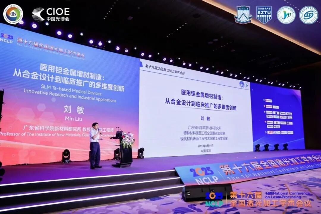 大会以“聚焦前沿激光制造,促进产业融合发展”为主题,邀请了中国科学院宁波材料技术与工程研究所激光极端制造研究中心主任李琳、深圳技术大学讲席教授阮双琛、广东省科学院新材料研究所教授级高级工程师刘敏等多位国内知名专家和行业领军人物出席大会。开幕式上,广东省科学院新材料研究所刘敏教授级高级工程师作《医用钽金属增材制造:从合金设计到临床推广的多维度创新》大会报告。